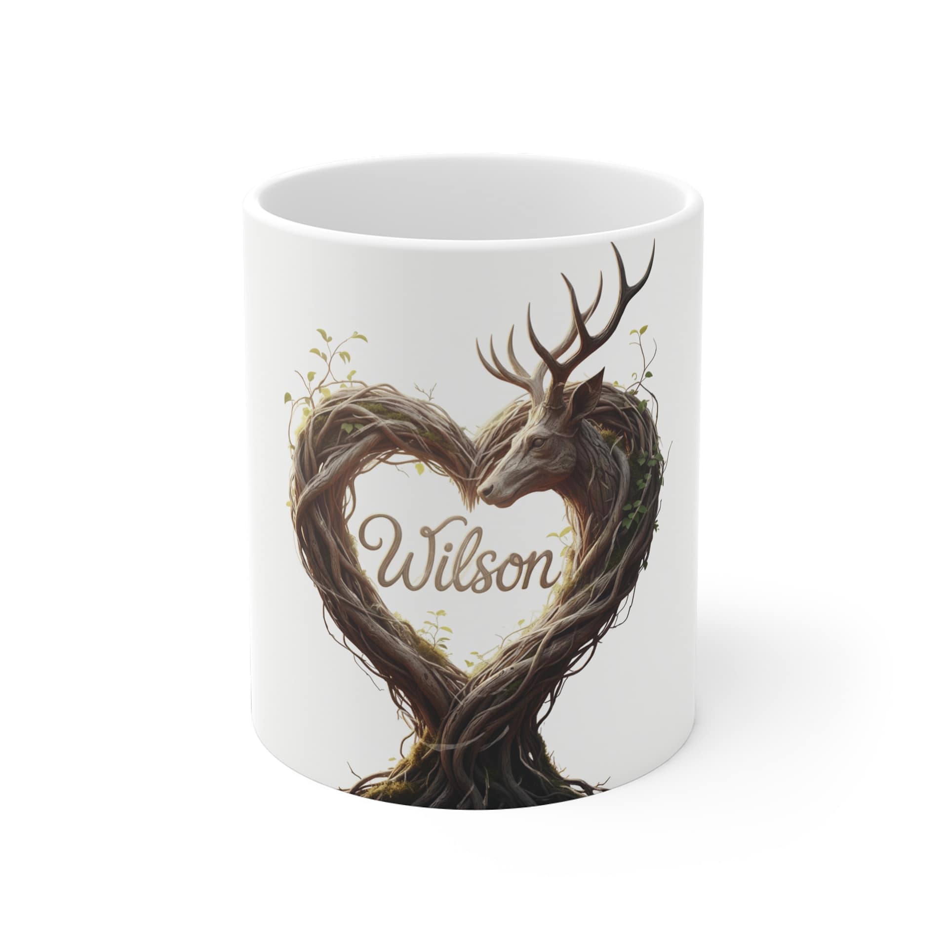 Wilson Deer Heart Ceramic Mug — Personalized Woodland Nature Coffee Cup (11/15/20oz)