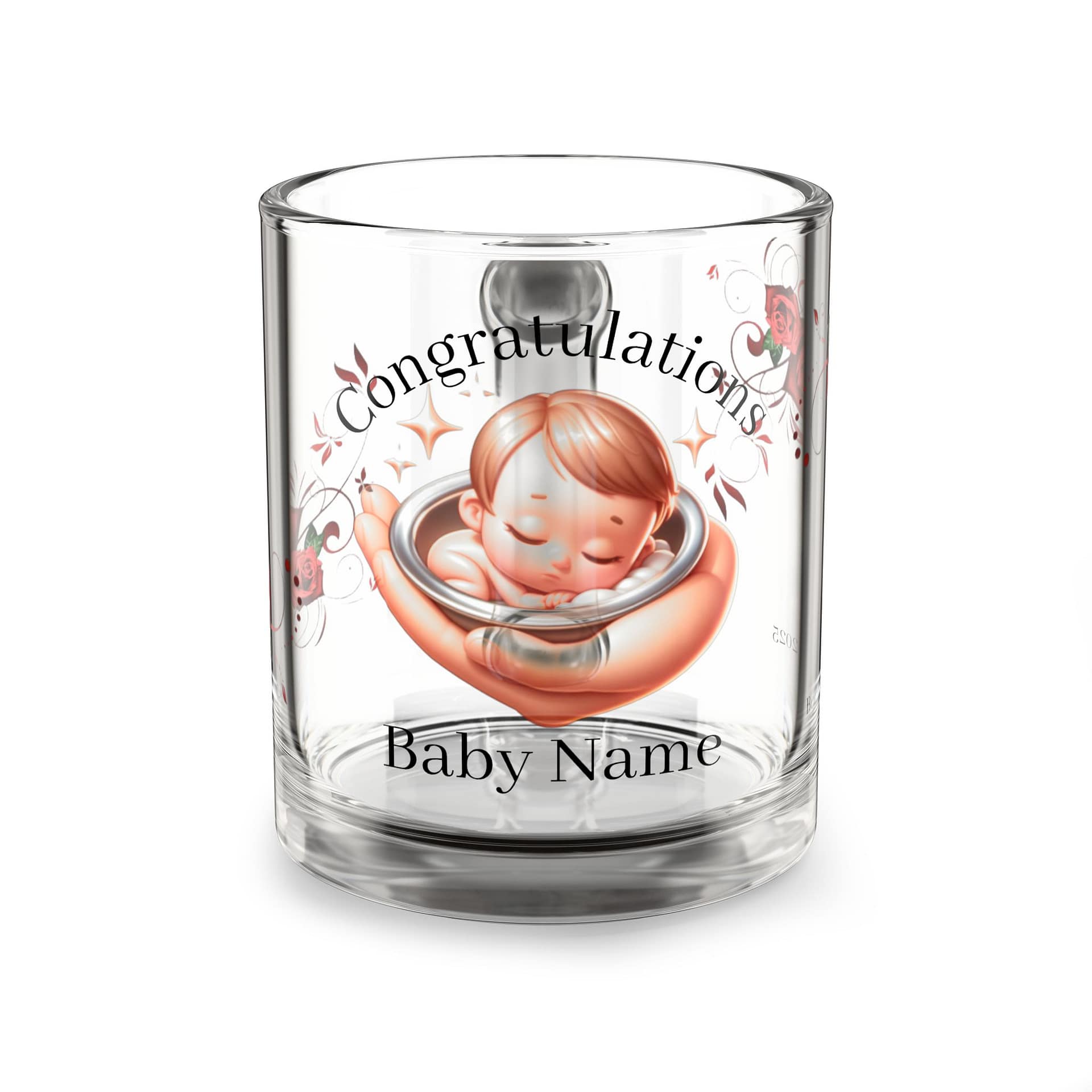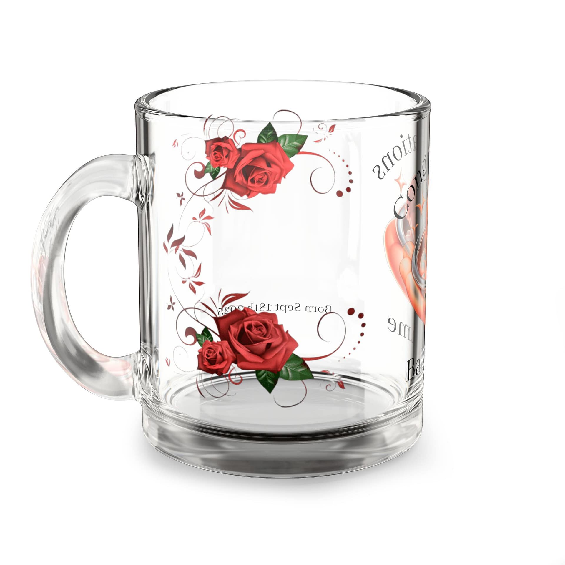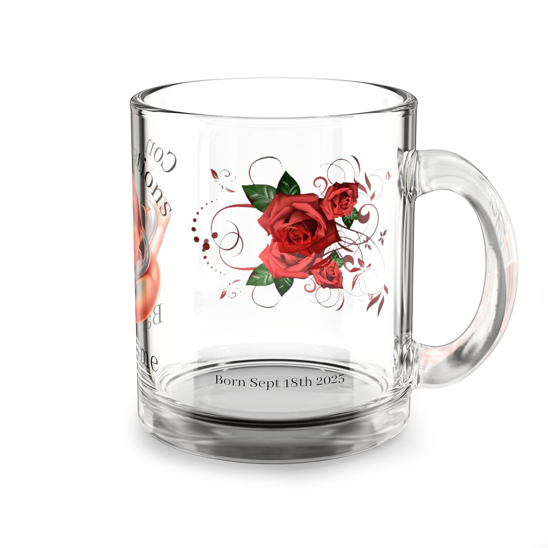 Personalized Baby Milestone Glass Mug, Newborn Gift, Baby Shower Favor, Custom Keepsake, Congrats Mug, Floral Design