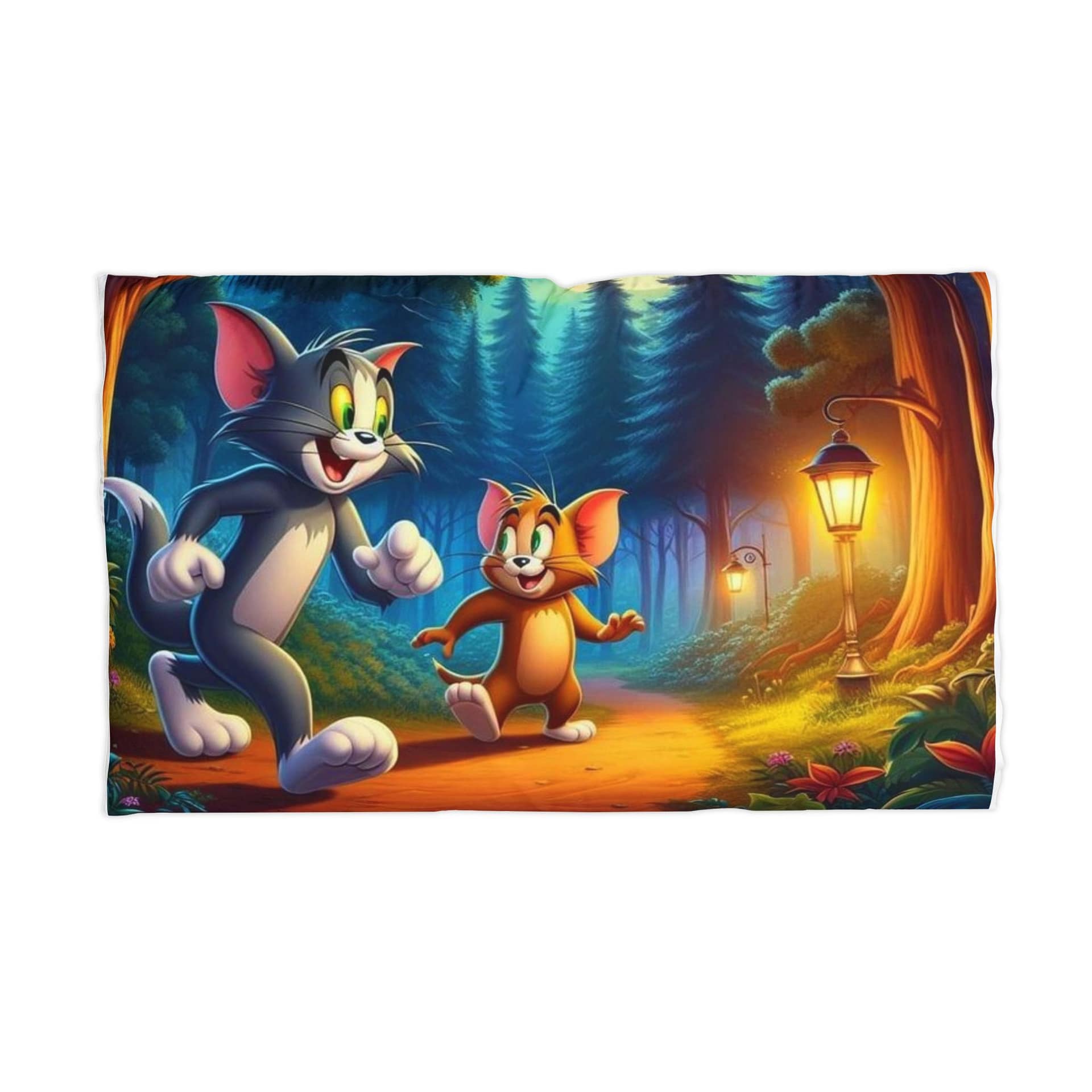 Whimsical Cartoon Microfiber Pillowcase – Tom and Jerry Forest Adventure